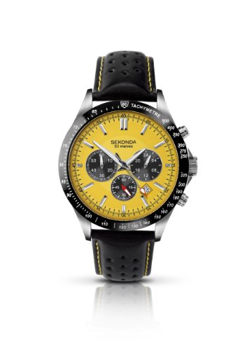 Sekonda offer Sekonda Men's Quartz Watch with Yellow Dial Chronograph Display and Black Leather Strap 3378.27. This awesome product currently limited units, you can buy it now for £59.49, You save -
